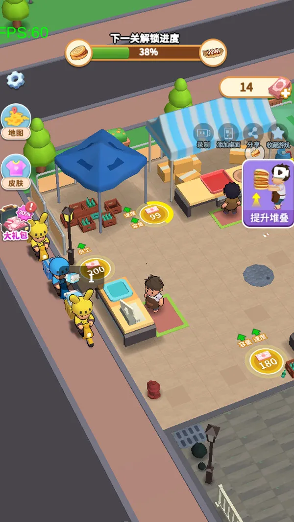 游戏的养成系统较为完善,玩家可以通过不断升级摊位和招募员工,逐步壮大自己的小吃摊。这种成就感能让玩家沉浸其中,乐此不疲。